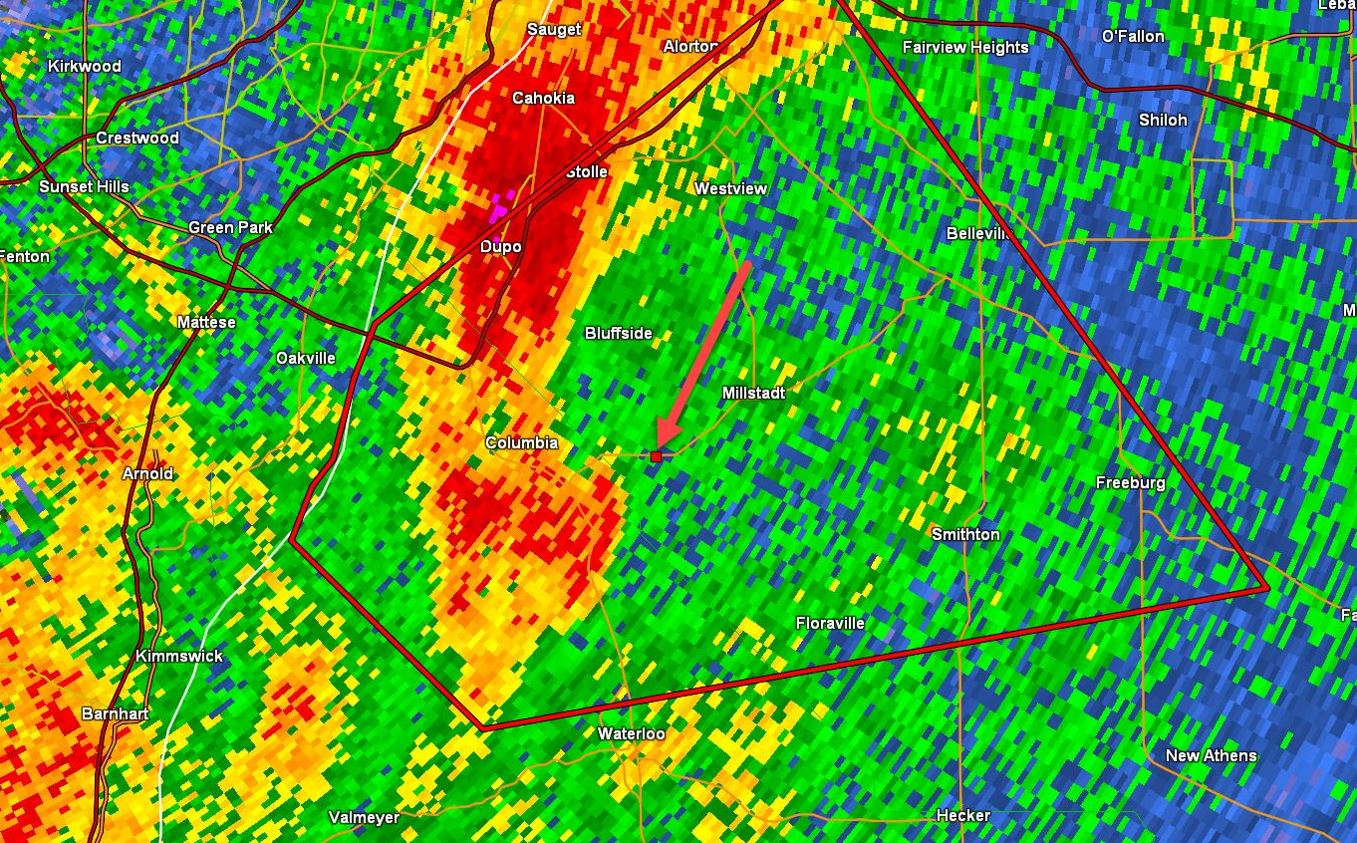 We held our location and watched the storm to our west to see if it would sustain or die off. Meanwhile, we also kept an eye on what was happening to our south and with the first storms going up in Tennessee versus Arkansas, we chose to stay where we were. As the storm moved closer to us, it maintained the rotation and sustained the tornado warning, so we finally pulled the trigger to intercept this storm. We worked our way to the Chester, Illinois bridge to cross over the river into Illinois and then move north up Highway 3.