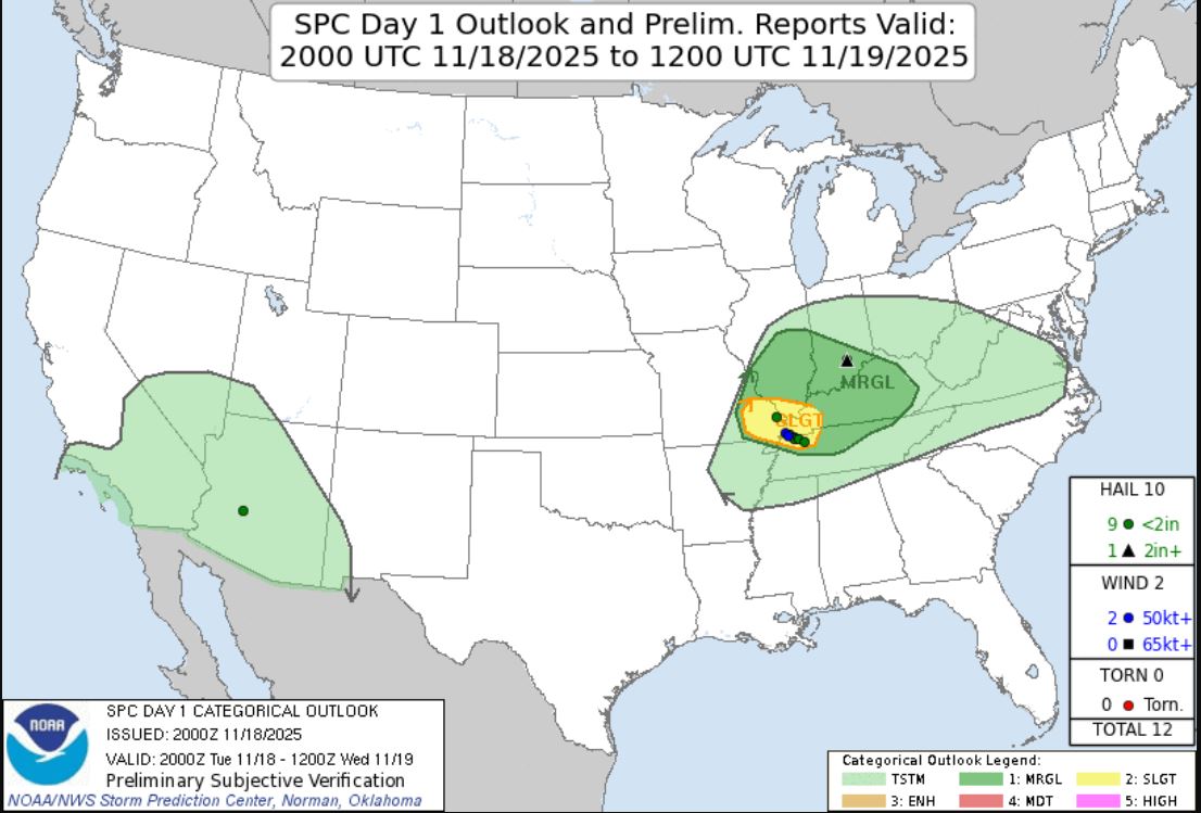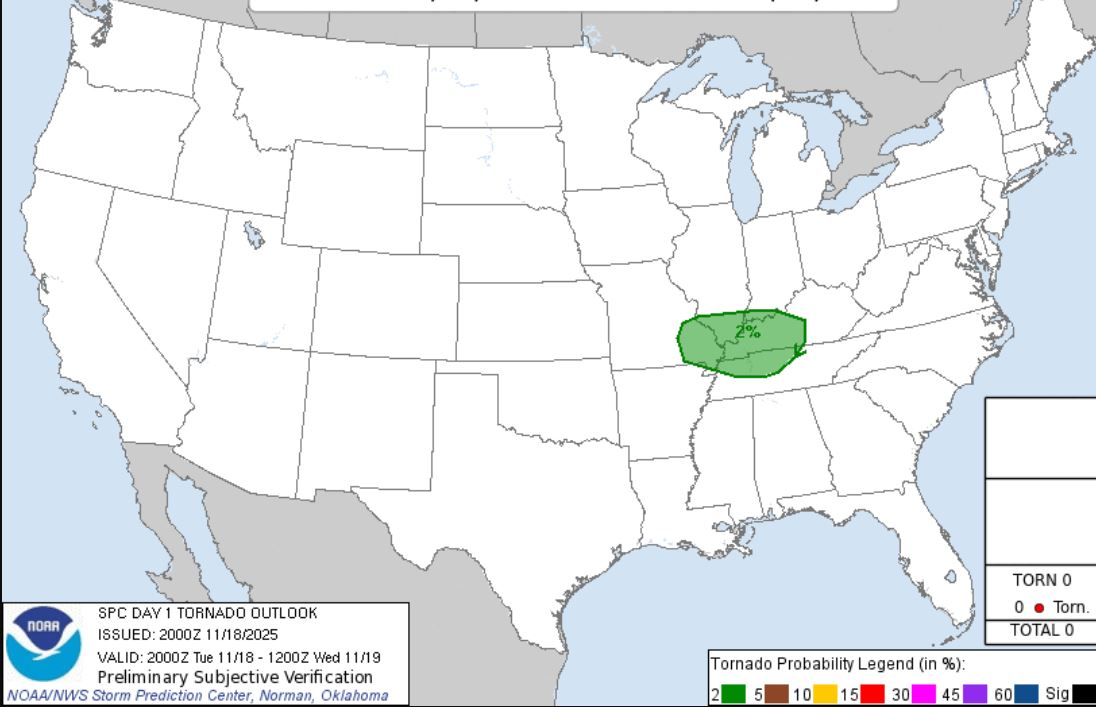 With there being no other 2nd season storm opportunities this year, my son Ryan and I chose to chase this Marginal, 2% Tornado Risk day as the Storm Prediction Center had at least mentioned the potential of tornadoes in their forecast.  The risk was upgraded to a Slight Risk in the evening.