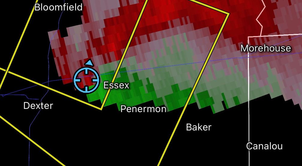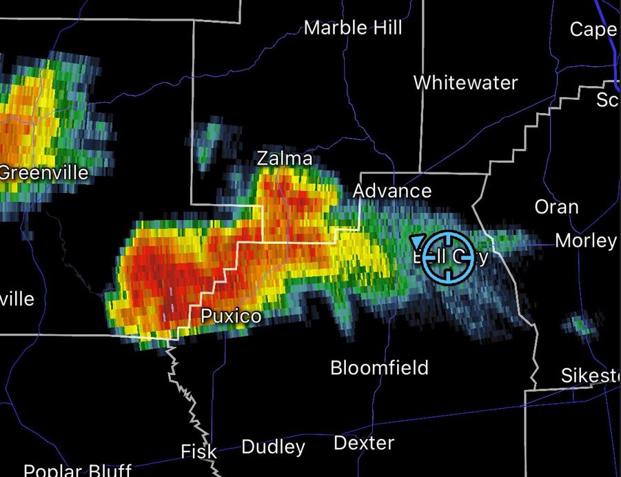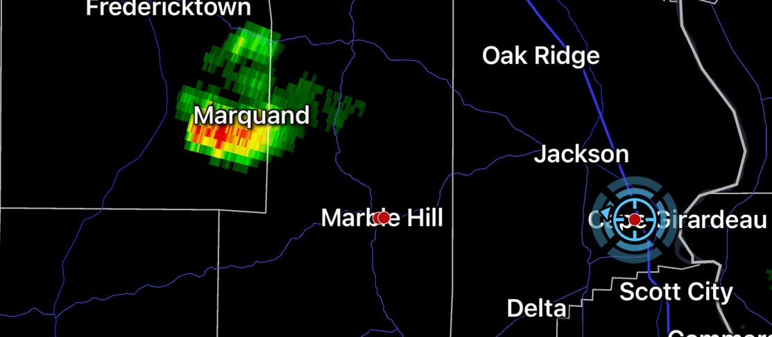 We headed South and stopped for a leisurely lunch in Perryville, Missouri.  We kept our eye on the radar and noticed a couple storms begin to develop out to our southwest.  We moved south to Cape Girardeau, Missouri and put our attention on the northern most cell over Marquand, Missouri as it was moving east toward us.