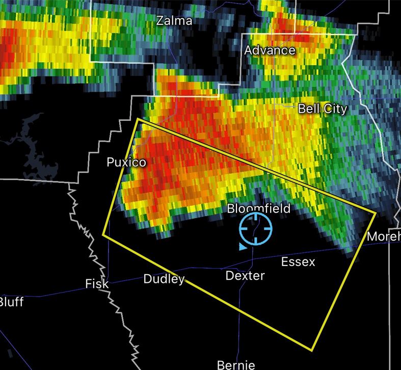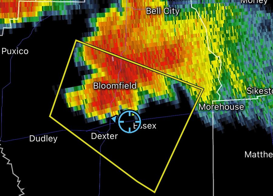 We moved down to Scott City, Missouri and worked our way west, then south as the storm began turning southeast.  Our goal was to get to the south before the now Severe Warned Storm overtook us.  We set our target at Dexter, Missouri.