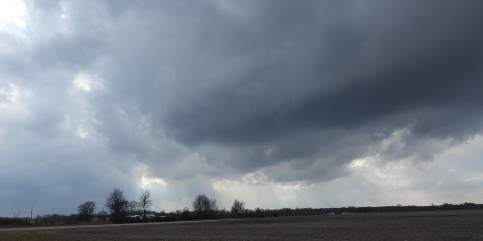 The storm was heading toward the east side of Robinson, Illinois and would then cross over into Indiana.    Unfortunately, there is no bridge crossing there.  It was very iffy if we could reach it before the storm flew by us.  I reached the edge of the core and decided to punch through it and battle any hail in hopes of getting a view before it disappeared out of sight in Indiana.  When I came out of the heavy rain, I was greeted with a wall cloud, but I saw no indication of significant rotation.  Any remaining rotation had moved into Indiana as I turned around to head back.