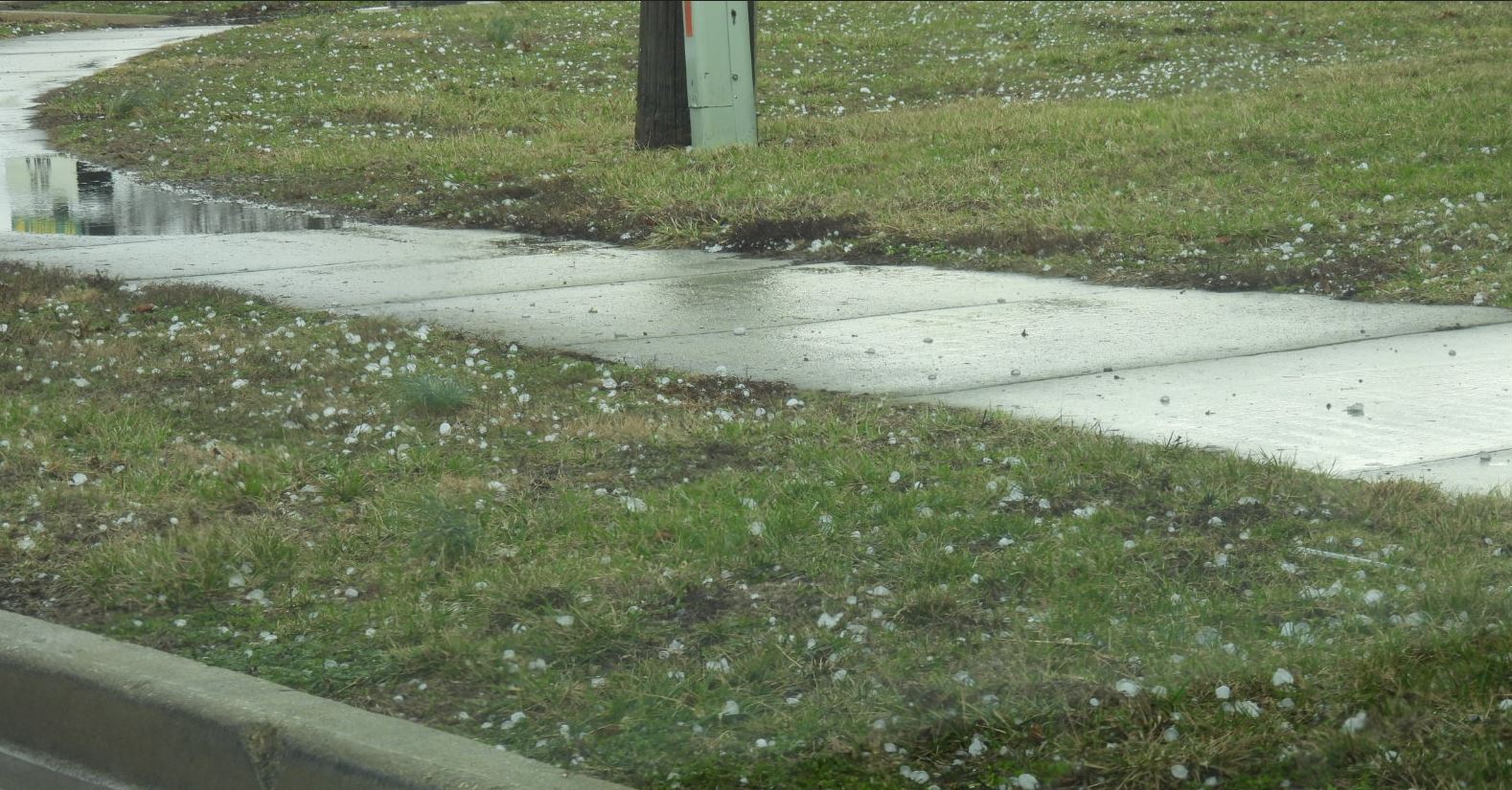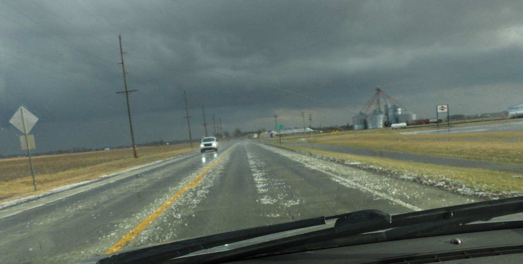 As the storm pulled away, the rotation weakened.  We drove north into the core to get to our east option, Highway 33.  As we passed through Dieterich, Illinois, the hail core had just gone through the south side of town dumping 1"-1.25" hail.