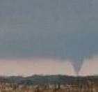 Although I didn't know it at the time, the dash camcorder captured the very distant funnel cloud, maybe a Tornado for a brief glimpse before going back out of view.  This is a zoomed, rather blurry look at it from Highway 33, looking south-southeast.  Could it be touching the ground?        UPDATE:  Confirmed as an EF1 Tornado