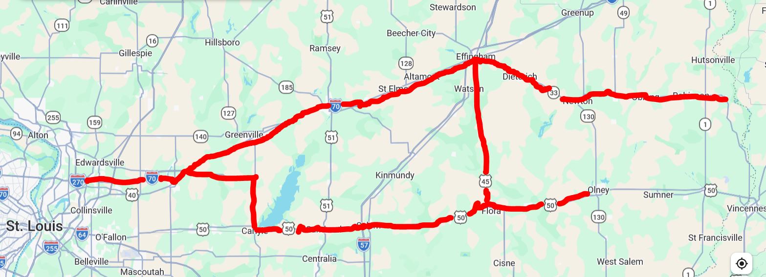 I left the house around 11:30am with a target of Lebanon, Illinois on Highway 50 to meet up with Nick.  On the way there, I altered the target further east to Carlyle, Illinois to stay ahead of the on-going line of rain showers.  I met up with Nick in Carlyle and we decided to move further east to Salem, Illinois.  There, I had lunch and looked over the current model data with Nick and kept an eye on the radar.   Eventually, the showers coming at us from the southwest began to intensify as the atmosphere was becoming more unstable.