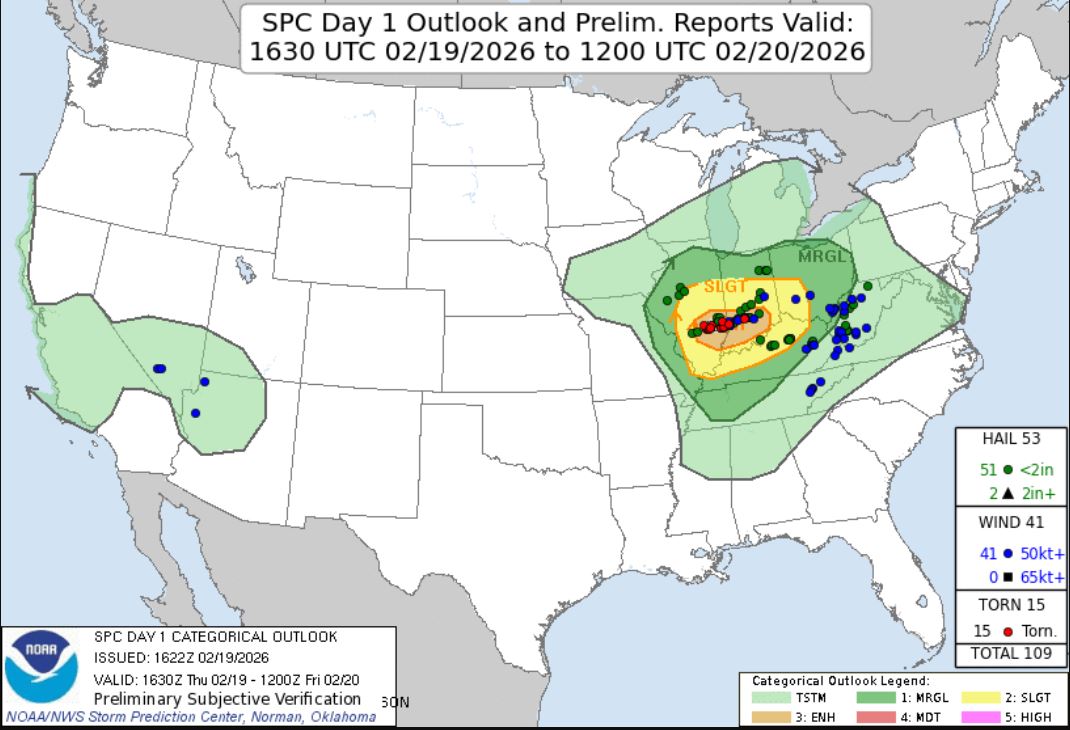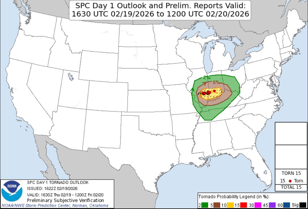 The Storm Prediction Center had an Enhanced Risk of Severe Storms with a 10% hatched Tornado Risk.
