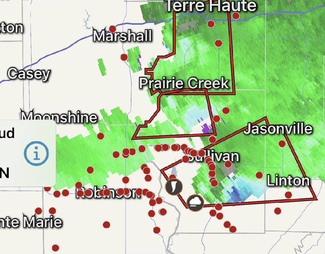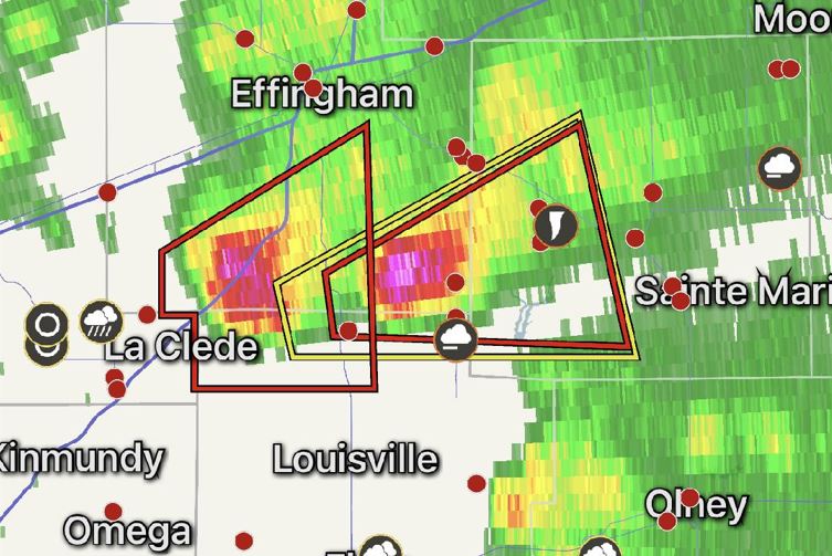 Nick did not punch the core, so that was the last I saw of him.  I headed back west on Highway 33.  Daylight was now turning into darkness as I made my trek toward home.  As I was nearing Effingham, Illinois and Interstate 70 for my route home, it was now completely dark.  But the weather gave me one final surprise.  Right in front of me two Supercells became Tornado warned.  I was in perfect position to intercept them both, but due to chasing solo and in total darkness, I chose to steer around them.