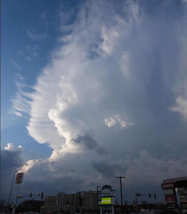 Photos of storms this day were few.  We found ourselves staying so far in front of the approaching storm line due to the storm speed that we rarely could see anything except the very top of the clouds at a distance.  Our dash cameras were mostly facing east all day as we continually had to keep moving that direction with the fast moving line behind us.  During our trip, we kept hearing that 60 miles to our north there was a confirmed Tornado.  Unfortunately, we had nothing similar in our area.