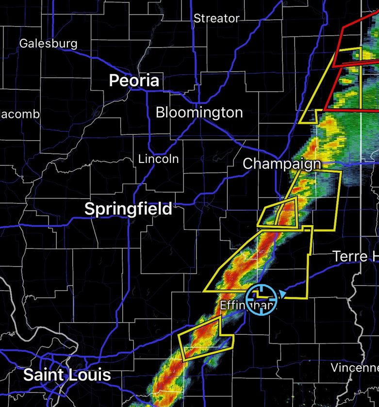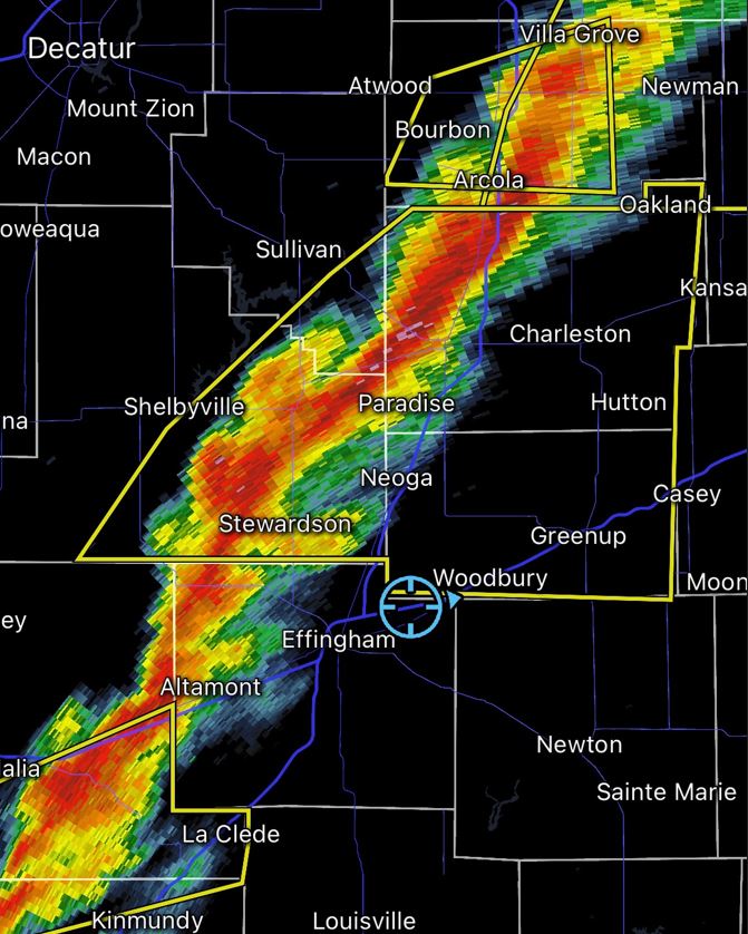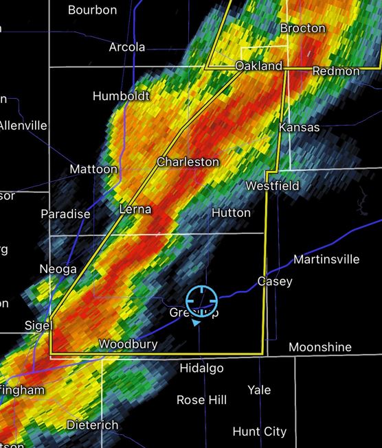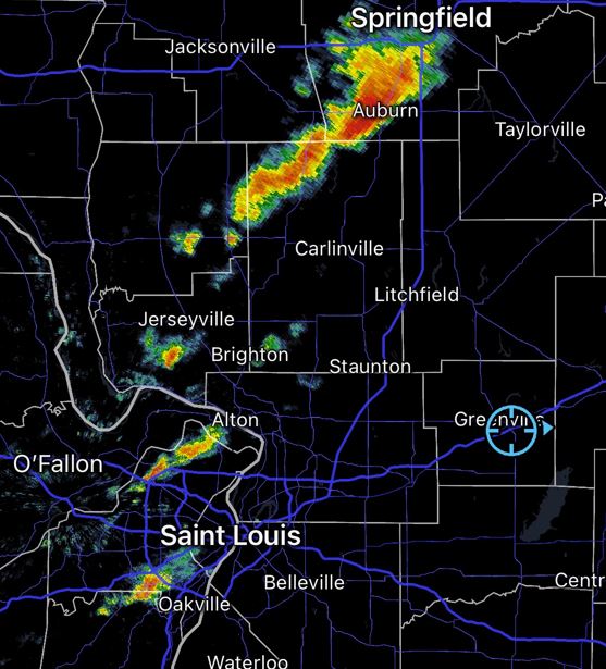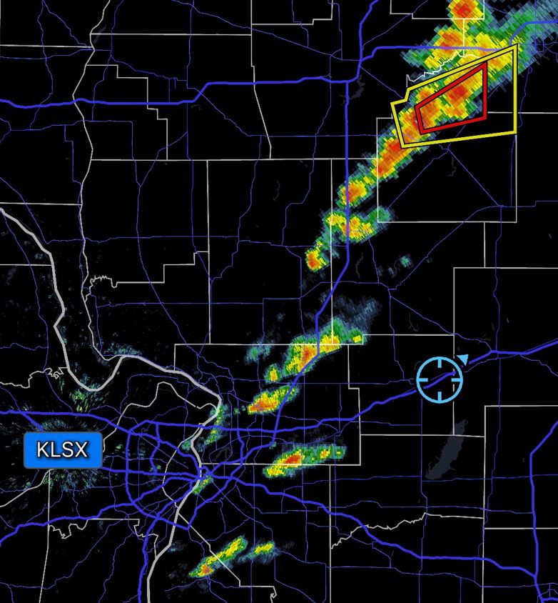 targets.  We kept our eye on the radar watching an on-going storm line to the north, but now noticed new storms initiating in Eastern Missouri by mid afternoon.  We kept our eye on them as they approached.  We saw a Tornado Warning in the storm line to the north giving us some hope that the cells approaching us could do the same before lining out.